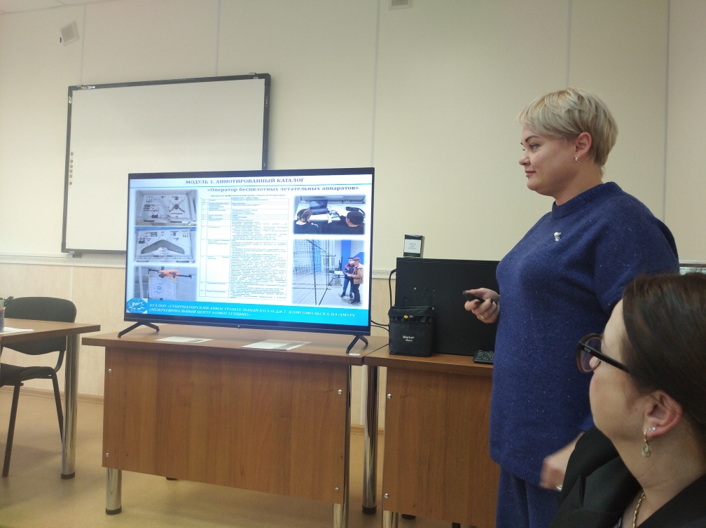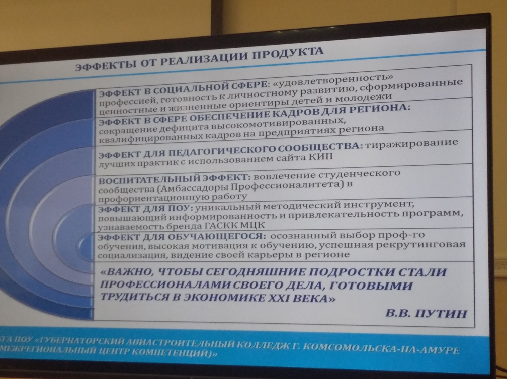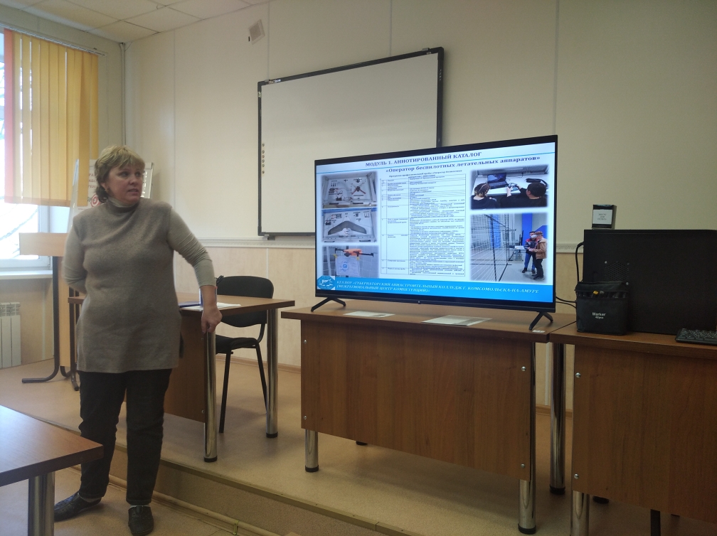 После достойной защиты своей работы на Межрегиональной научно-практической конференции в Хабаровске, на совещании педагогического коллектива колледжа преподаватели также представили свой инновационный продукт-победитель: рассказали в чём его суть, и как в дальнейшем продукт будет использоваться и развиваться. А также какие, благодаря ему, могут быть перспективы повышения качества профессионального образования и эффективности трудоустройства выпускников на остро востребованные экономикой страны производства.